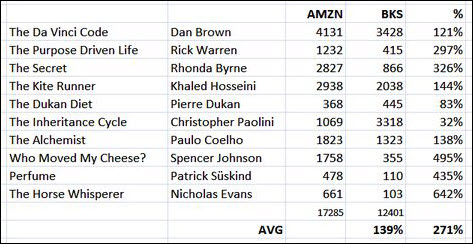 This is Amazon’s current top 10 business book bestseller listing with comparative review data on Barnes & Noble: the 32% cumulative figure is the more relevant number.