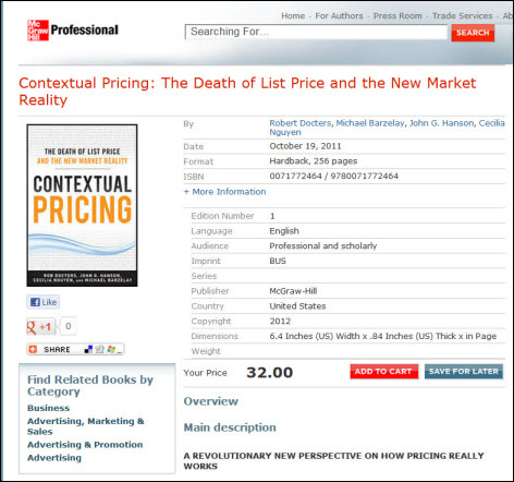 Contextual Pricing, a McGraw-Hill professional title, has four authors. They are given equal billing on the cover and share equal credit on the copyright page. Therefore all four authors should be included whenever this title is listed. McGraw-Hill’s online catalog gets it right:
