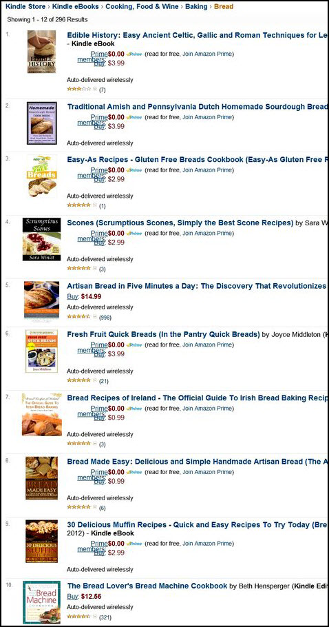 Here’s a screen shot of the titles in the Bread section on Amazon as I started to write this entry: