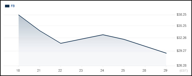 Facebook shares closed today at $28.84, nearly 25% and $25 billion off their opening price just 11 days ago.