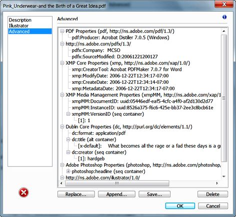 PDF metadata can be verbose. Indeed the infamous 2006 pink underwear press release (PDF) from Sheriff Joe’s office provides lots of detail on the document author and the software used to create the file.