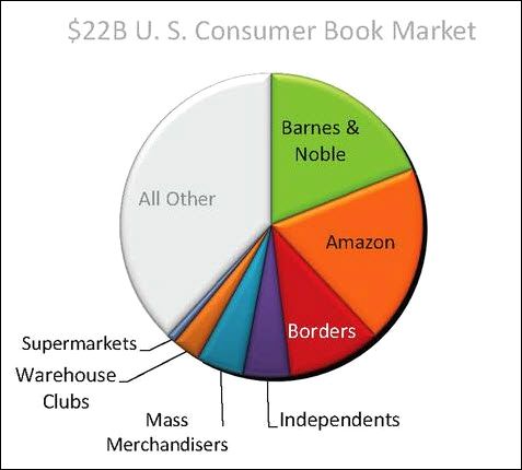 Depending on how you slice and dice the numbers, Barnes & Noble controls about a quarter of the U.S. retail market (including online). If you look at bookstore sales only, chains (including Books-a-Million) control roughly 4/5ths of a $2.7 billion pie. As Trachtenberg notes, the book isn’t stocked in the 689 stores of Barnes & Noble Inc., Wal-Mart Stores, or Target. I called a couple of Books-a-Million stores and it’s not on their shelves either.