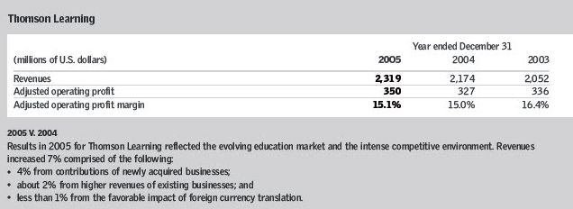 The last year that Thomson reported sales for Thomson Learning was fiscal year 2005.